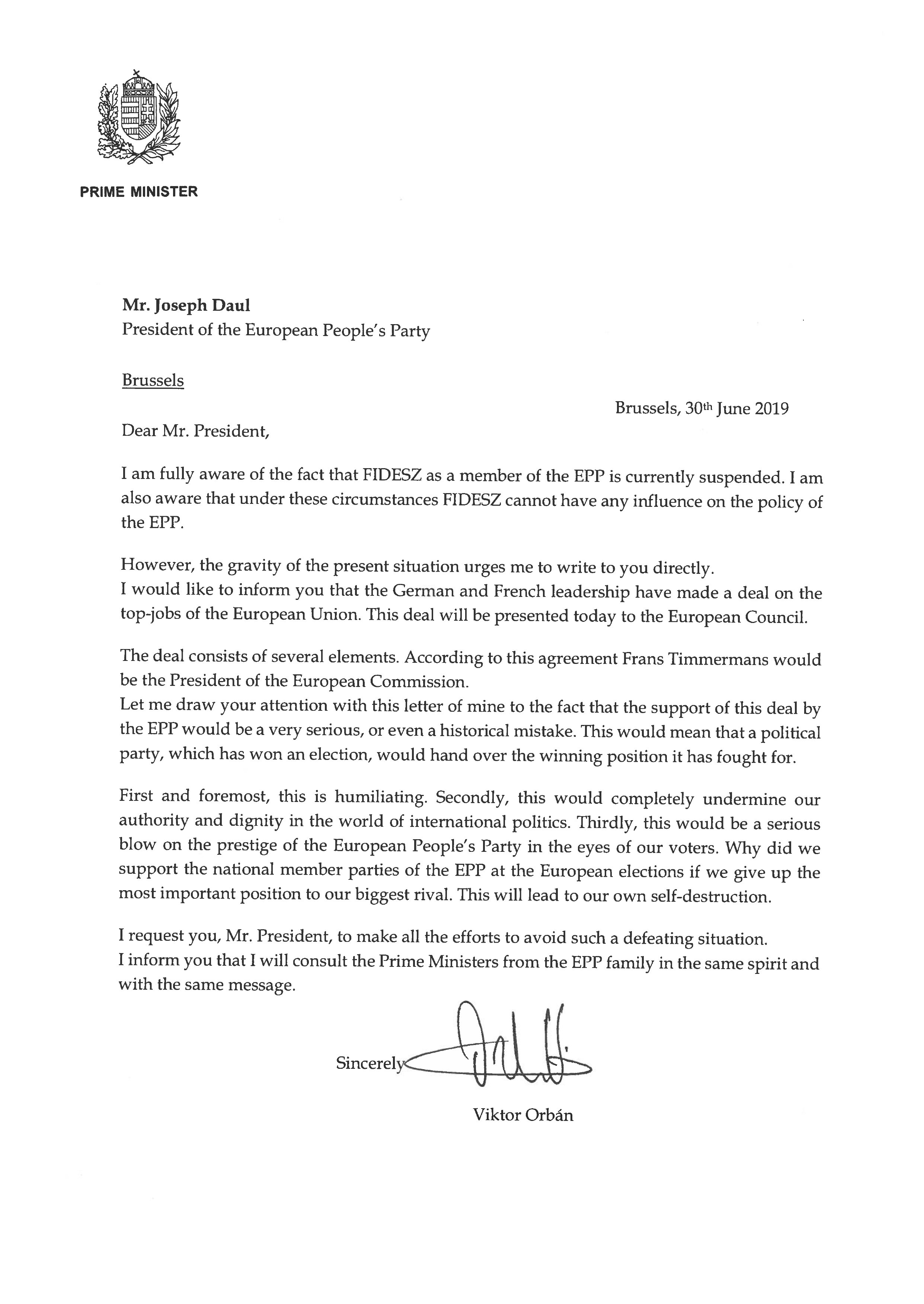 Zoltan Kovacs On X Here S The Full Text Of Pm Orban S Letter To Epp Pres Josephdaul That S Stirring An Uprising In The Epp Ranks Says Epp Support For The Franco German Deal Making
